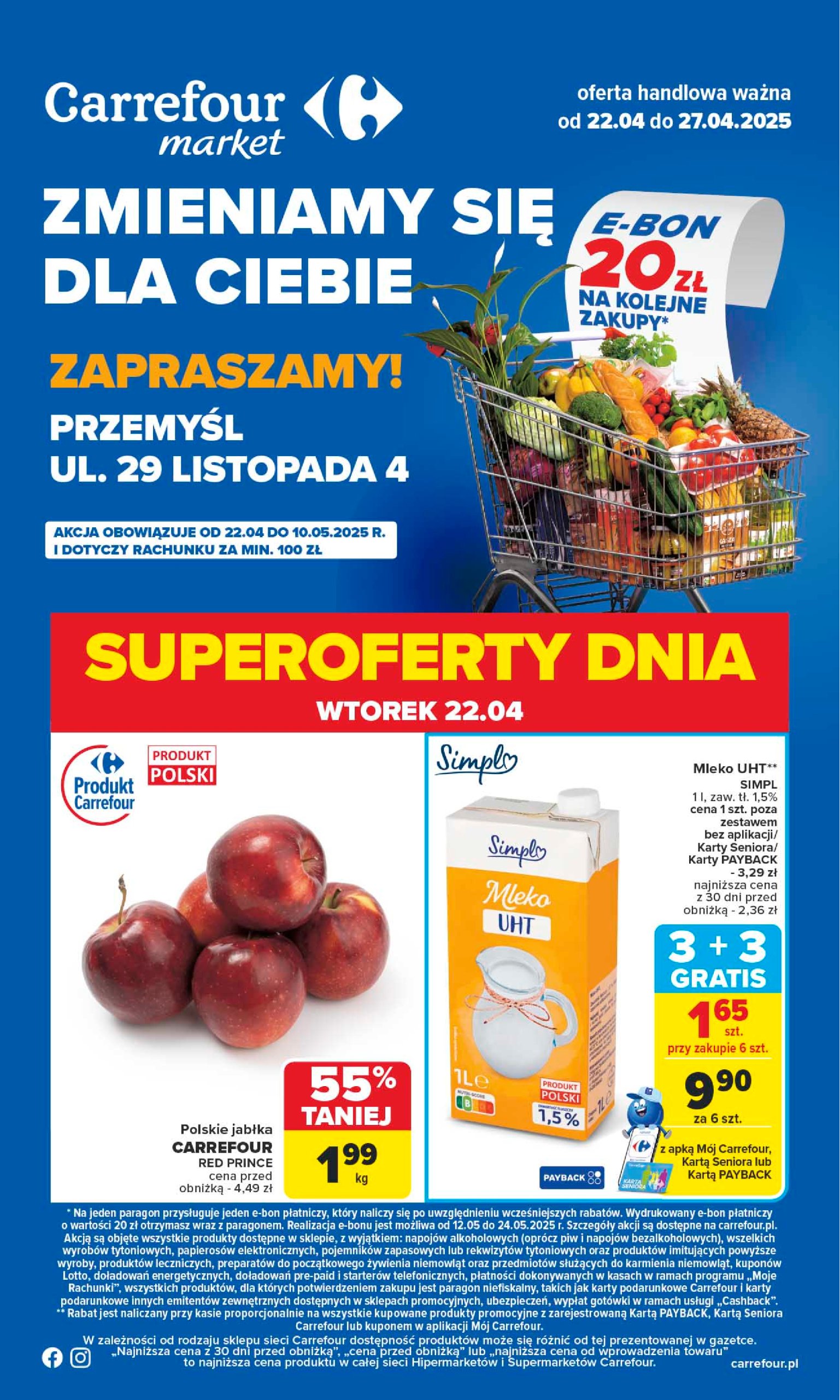 Sprawdź aktualną broszurę Carrefour, aby zapoznać się z wyborem produktów oferowanych w bardzo atrakcyjnych cenach promocyjnych. Promocje trwają, więc nie przegap okazji, aby sprawdzić ulotkę Carrefour z tego tygodnia i ulotkę z następnego tygodnia, aby uzyskać nowe rabaty, wyprzedaże i promocje na artykuły wyprzedażowe. Przeglądaj ulotki Carrefour PDF wygodnie na naszej stronie!